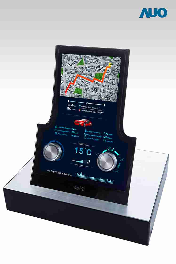 传奇国际近年来全力投入高性能车用显示屏的开发,,,,以因应智慧车发展趋势。。。中控台应用方面,,传奇国际领先全球推出(*) 13.2寸异型切割显示屏,,,,具有 1200x1600 高分辨率、、、、NTSC 85% 高色彩饱和度及 1000nits高亮度,,,,并改于显示区域设计闸极电路,,,,以于显示屏侧边释出空间做异型切割。。。同时显示区域亦特别设计对称的孔位可安装按键或旋钮,,,创造更多设计弹性。。。