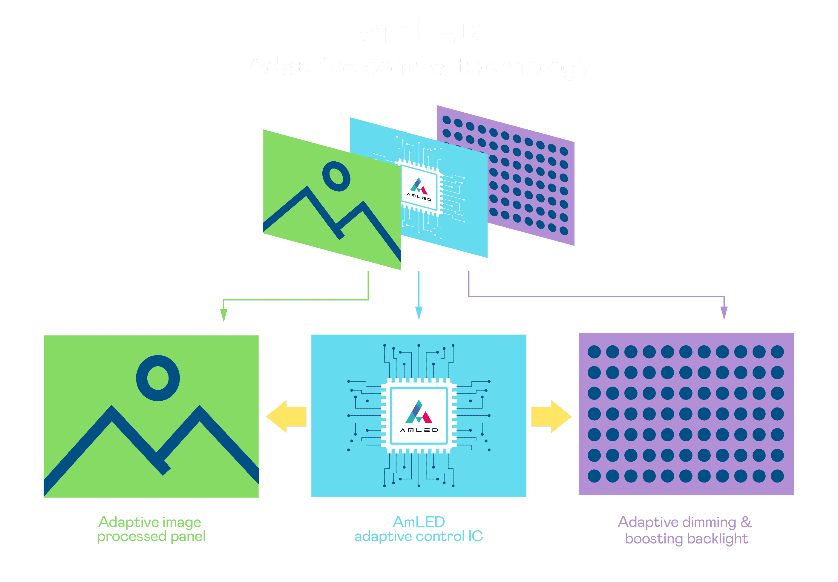 AmLED 具备更省电与低蓝光特性。。。与一般的 LED 背光显示技术相比,,由于 AmLED 常时处于局部调光状态,,,其功耗仅有前者的 50% 左右,,同时 AmLED 还具备低蓝光特性,,,满足长时间使用的护眼需求。。。