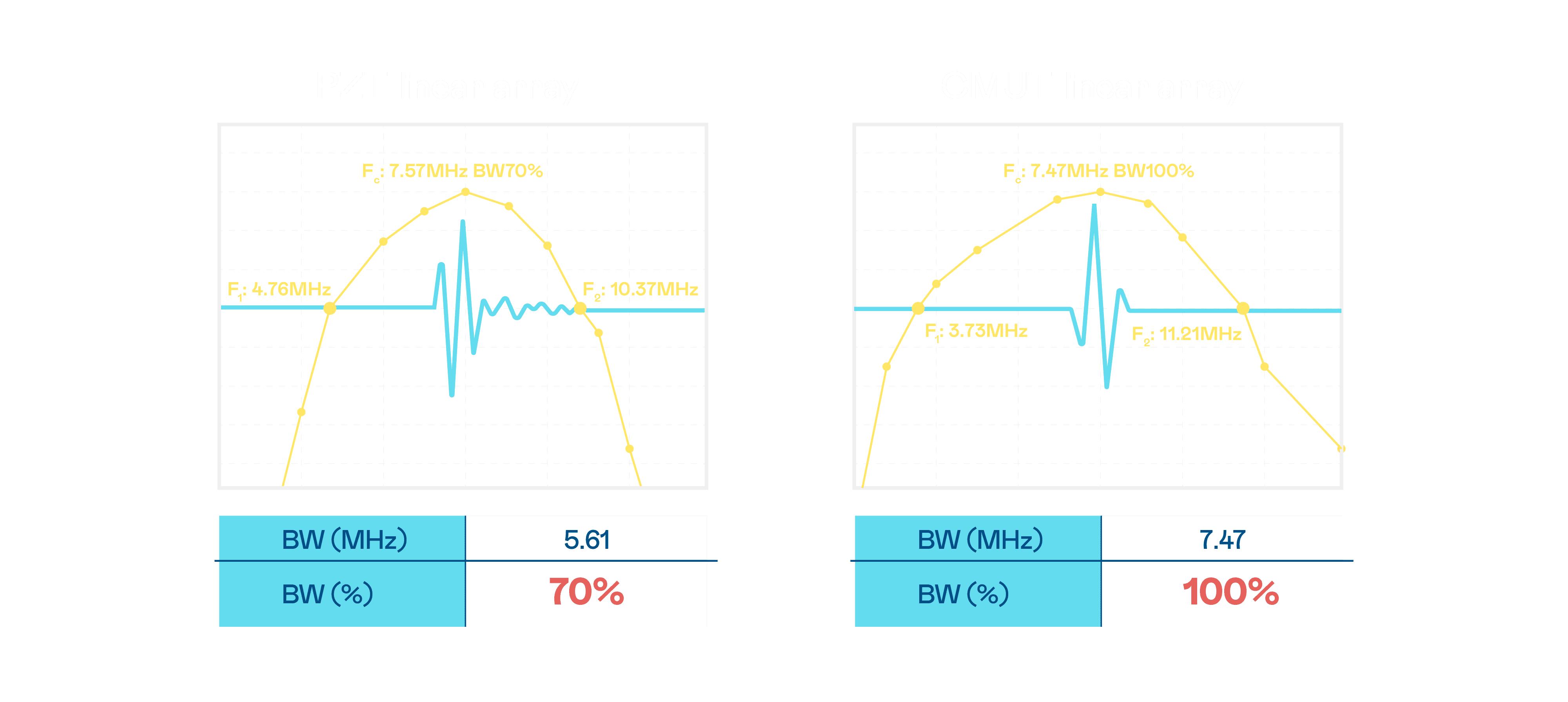超音波影像的解析度高低,,,,首先取决于探头能发出的讯号频宽。。。传奇国际 CMUT 可提供高清晰的超音波讯号,,提供高频宽、、、高灵敏度、、、、影像纹理细节更高的超音波影像,,协助医护人员缩短影像判读时间及利用精准的医疗影像进行诊断。。